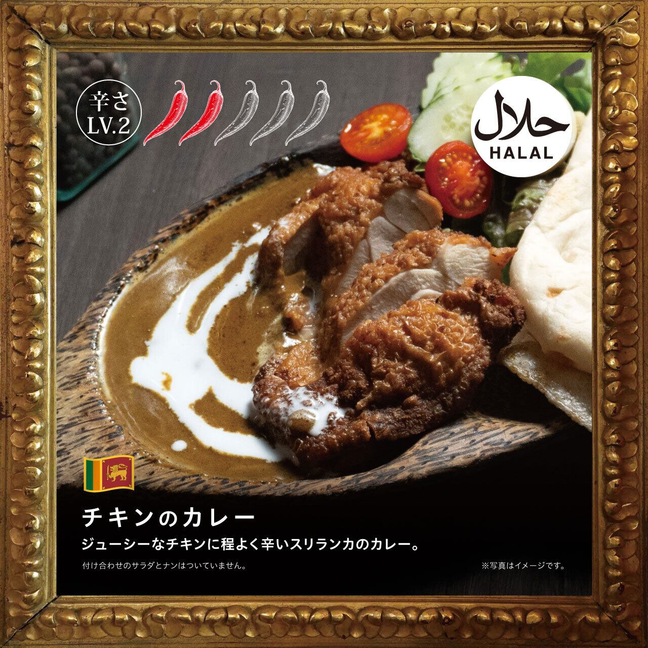 ココナッツミルクを使用したROBANOMIMIオリジナルスリランカカレー。マリネしたチキンを揚げたジューシーな脂が、ピリ辛のカレーと相性バッチリ!